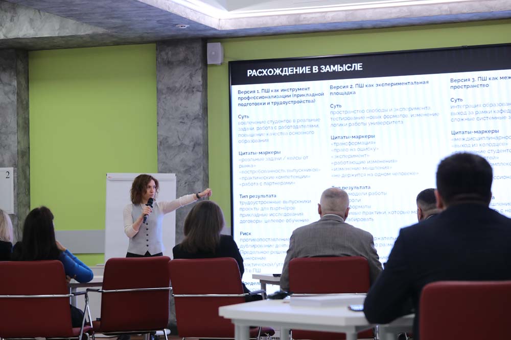 В первый день участникам сессии предстояло найти расхождения с замыслом проекта и определиться с выбором универсальной ключевой модели профессиональной школы, которая бы максимально соответствовала стратегическим целям развития университета.